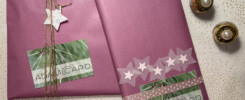 Warum nicht einmal die Glückwunsch- oder Weihnachtskarte offen auf dem schön verpackten und mit Bändern verzierten Geschenk platzieren? Die folgenden Beispiele sollen Anregung für eigene Ideen sein. Viel Freude beim Gestalten von Geburtstags- und Weihnachtsgeschenken mit meinen Karten!